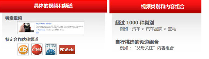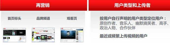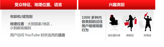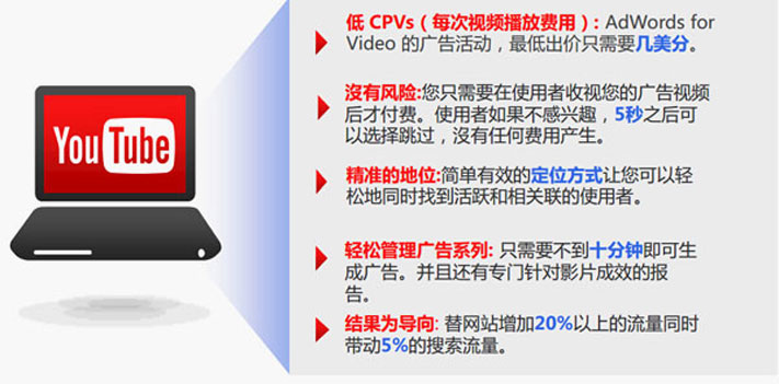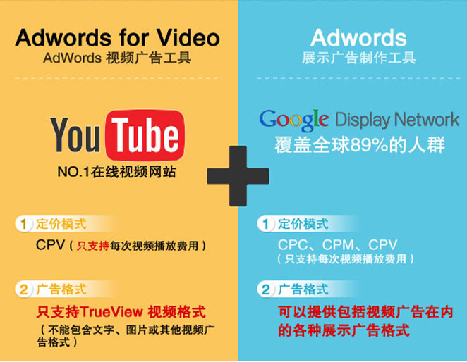 2012年,Google 正式推出向所有廣告主開放的AdWords for Video廣告平臺。 從名稱可以看出,新廣告平臺延續了Google Adwords關鍵詞競價廣告系統的邏輯 廣告主可以根據用戶的搜索結果來投放視頻廣告。
